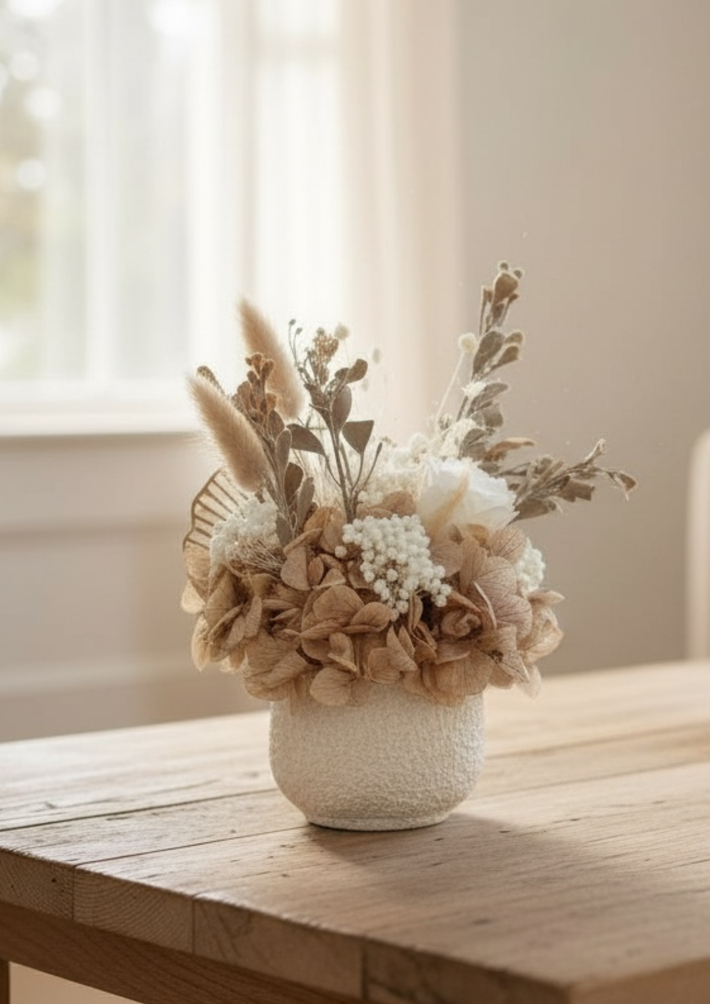 In meinem Atelier entstehen einzigartige, handgefertigte Dekorationen, die deinem Zuhause einen besonderen Charakter verleihen. Mit viel Liebe zum Detail kreiere ich stilvolle Arrangements aus Trockenblumen und haltbaren Materialien, die dir lange Freude bereiten. Ob minimalistisch, romantisch oder verspielt – meine Kreationen passen zu jeder Jahreszeit und jedem Anlass.