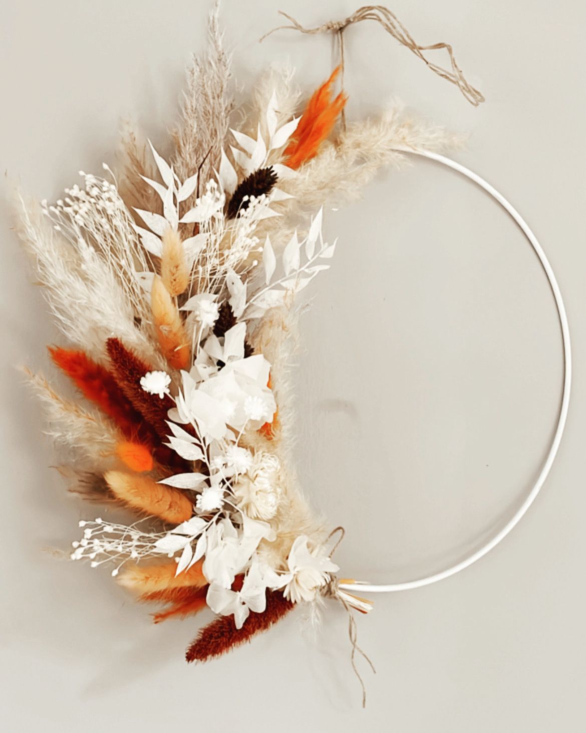 Lass dich von der natürlichen Schönheit und Beständigkeit der Trockenblumen verzaubern. Jede Dekoration wird individuell nach deinen Wünschen gestaltet, sodass sie perfekt in dein Ambiente passt. Egal, ob du ein elegantes Arrangement für den Tisch, einen floralen Türkranz oder eine kunstvolle Wanddekoration suchst – ich gestalte florale Highlights, die dein Zuhause zu etwas ganz Besonderem machen.